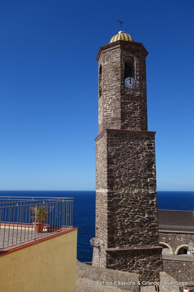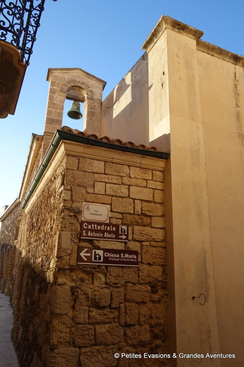 On a parcouru quelques ruelles ombragées de la ville, monté quelques escaliers avant d'en descendre d'autres et puis, attirés par le toit multicolore de son campanile, on est finalement arrivés aux pieds de la Concattedrale di Sant'Antonio abate, magnifique construction achevée au 17e siècle où se mêlent les styles gothique et renaissance.