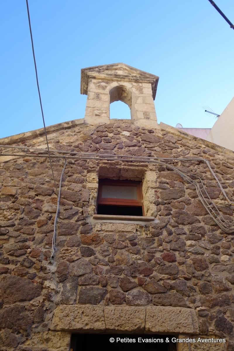 Au détour d'une rue, on a aperçu un tout petit clocher surplombant un joli mur en pierre, intrigués on a suivi le panneau pour découvrir cette "Chiesa S. Maria" à laquelle faisait référence le panneau accroché au mur. Sur la Piazza della Misericordia, qui fait face à la Chiesa di Santa Maria delle Grazie, on s'est retrouvés face à un bâtiment un peu surprenant, une église toute jolie mais sans entrée monumentale et avec une architecture très sobre, très loin de ce que l'on peut parfois croiser en Sardaigne !
