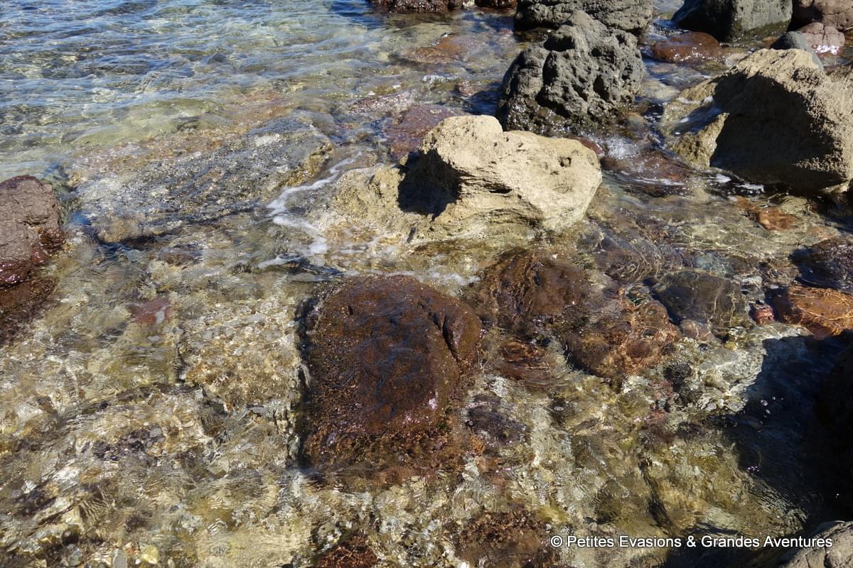 Malheureusement, ce cadre magnifique et cette eau transparente n’attire pas seulement les touristes français en quête de lieux pour se baigner et observer les fonds marins ! Très rapidement, alors que nos genoux (voire un bout de nos cuisses) étaient déjà dans l’eau, on s’est rendus compte que des dizaines de petites méduses roses ondulaient autour de nous, dans la belle eau translucide où l’on se voyait déjà restait des heures ... Raté !