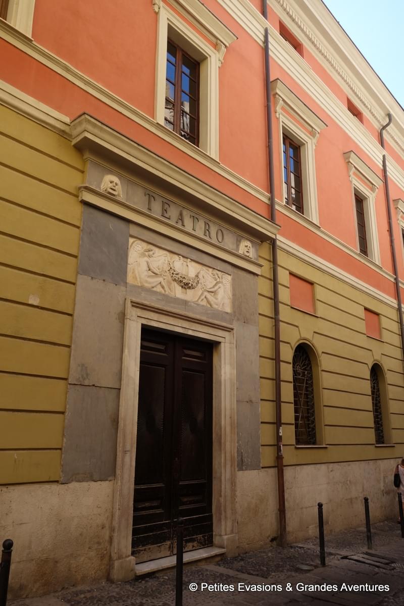 Après une pause rafraîchissante dans le Largo Ittiri, on a repris notre balade en observant les façades de l'animé Corso Vittorio Emanuele II. Sur le corso, l'actuel Teatro Civico, de style néoclassique, a pris la place de l'ancien Palazzo di città en 1826 qui faisait face, à l'époque, à la Piazza del Commune, disparue elle aussi aujourd'hui.