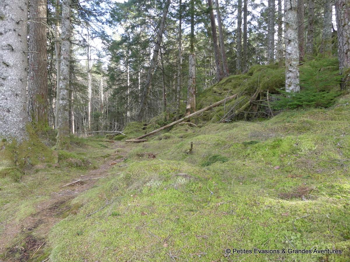 Après avoir fait demi-tour, on a essayé de trouver un autre chemin, toujours à travers les bois, sans succès, puisque l’on finissait toujours par être bloqués. L’exploration aventurière s’est donc terminée là, avec quelques regrets mais aussi quelques photos prises cœur de la forêt et d’autres jolis souvenirs plein la tête.