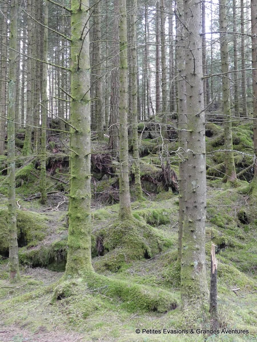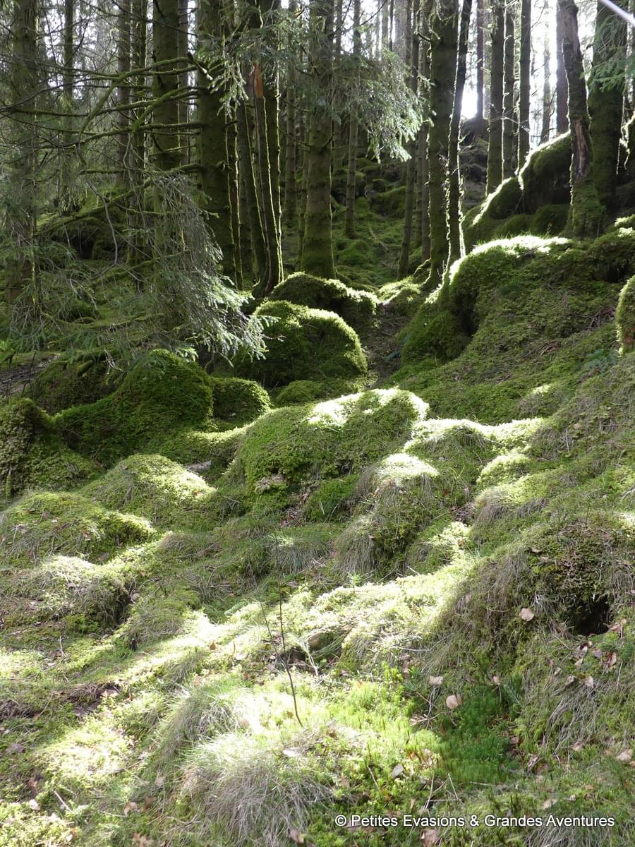 Sur les sentiers de l’arboretum, nous avons vu de grands arbres perchés - on ne sait toujours pas comment - sur des rochers ; des tapis de mousse impressionnants recouvrant tout sur leur passage, arbres, rochers, souches coupées ; des racines qui s’entremêlent à l’infini …
