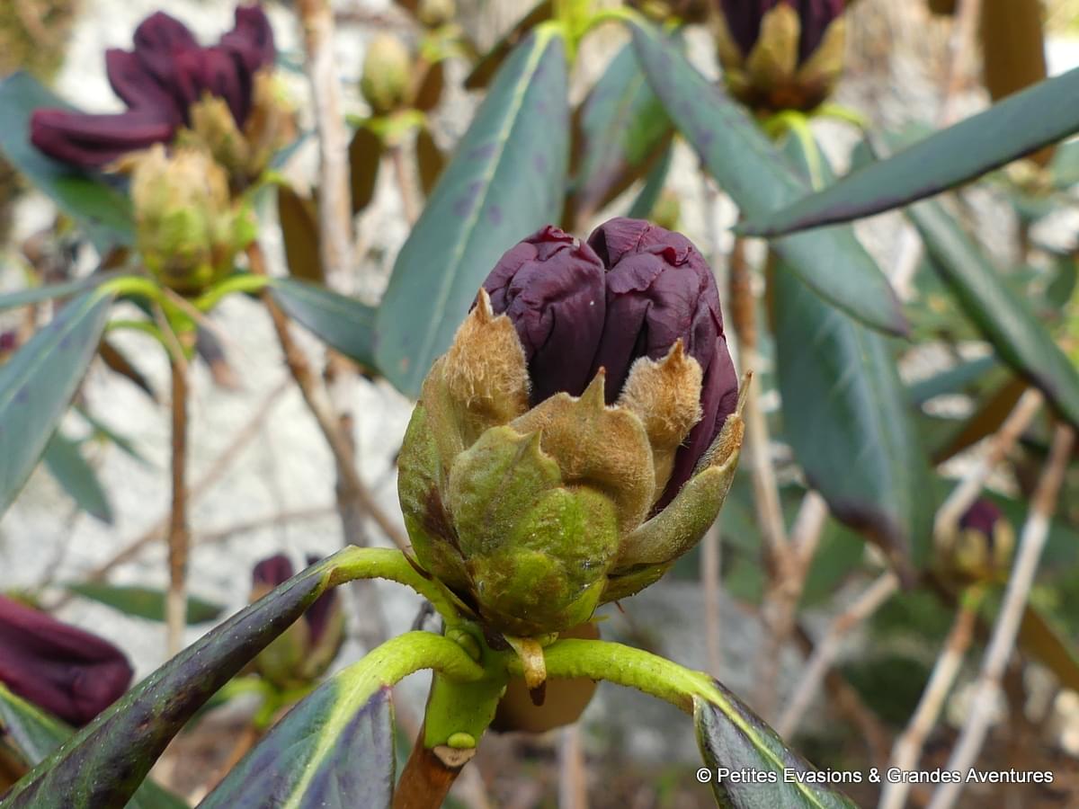 Puis, nous sommes arrivés au paradis des rhododendrons. L’arboretum de Milde possède la plus grande collection de rhododendron de toute la Scandinavie et … il y en a vraiment beaucoup ! Même si la plupart ne comptait que des bourgeons, nous avons quand même pu voir quelques couleurs parsemées, ça et là, parmi les feuilles vertes des arbustes, plus ou moins grands, nous laissant imaginer l’explosion irisée que cela doit être au cœur de la floraison.
