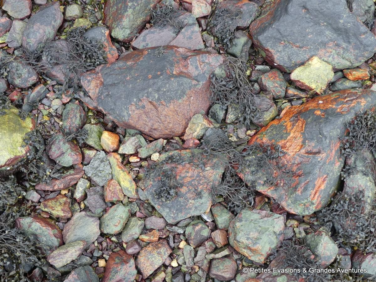 Notre balade s’est poursuivie parmi les espèces asiatiques, puis celles d’Amérique du Nord jusqu’à atteindre le Søre Mørkevågen ; un bras d’eau bordé, d’un côté, de rochers plantés d’arbres et, de l’autre, d’une étendue d’algues et de cailloux rouges et noirs.