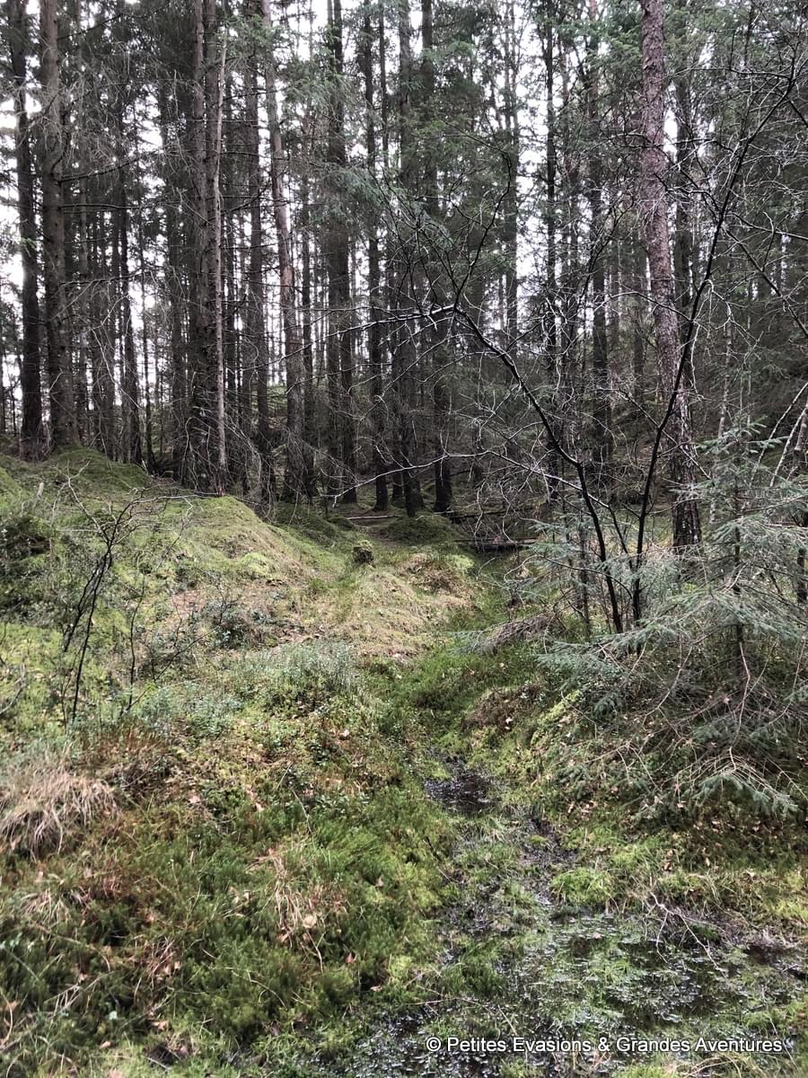 A ce stade de la balade, nous avons tenté de ne plus suivre les panneaux et de nous enfoncer dans la forêt en nous dirigeant à l’instinct (et un peu avec le téléphone aussi). Rapidement, on s’est retrouvés bloqués par des rochers, des troncs d’arbres et d’autres obstacles insurmontables.