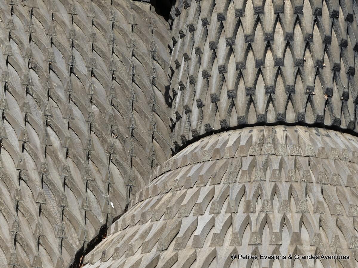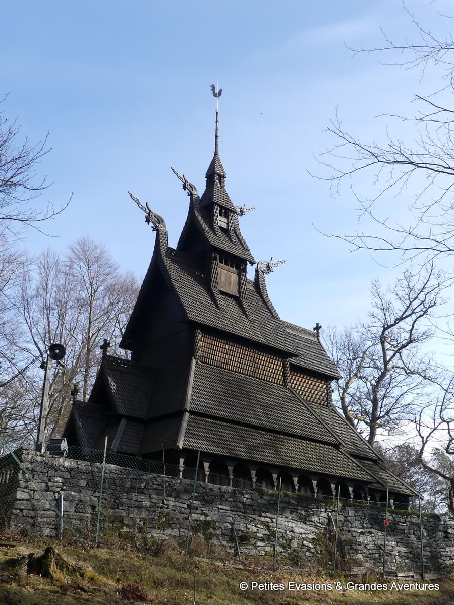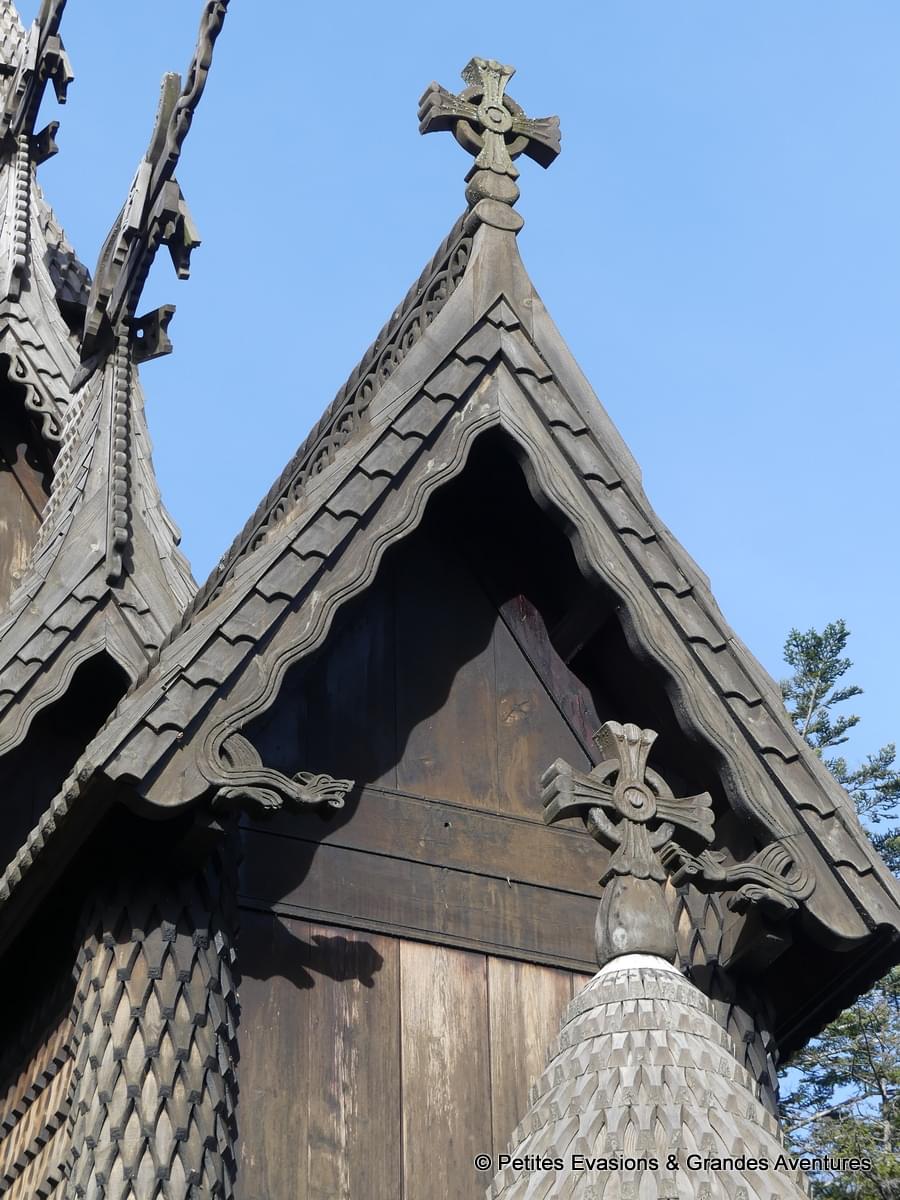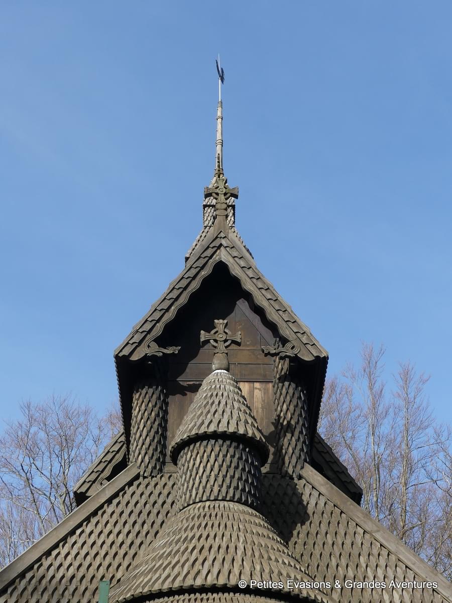 Et, au détour d’un virage, découvrir le toit de la stavkirke, fruit d’un travail minutieux du façonnage du bois. C’était la deuxième stavkirke que nous voyions, après avoir contemplé la Gol Stavkirke, au Norsk Folkemuseum à Bygdøy, mais la fascination pour cette architecture proche de l’orfèvrerie était intacte.