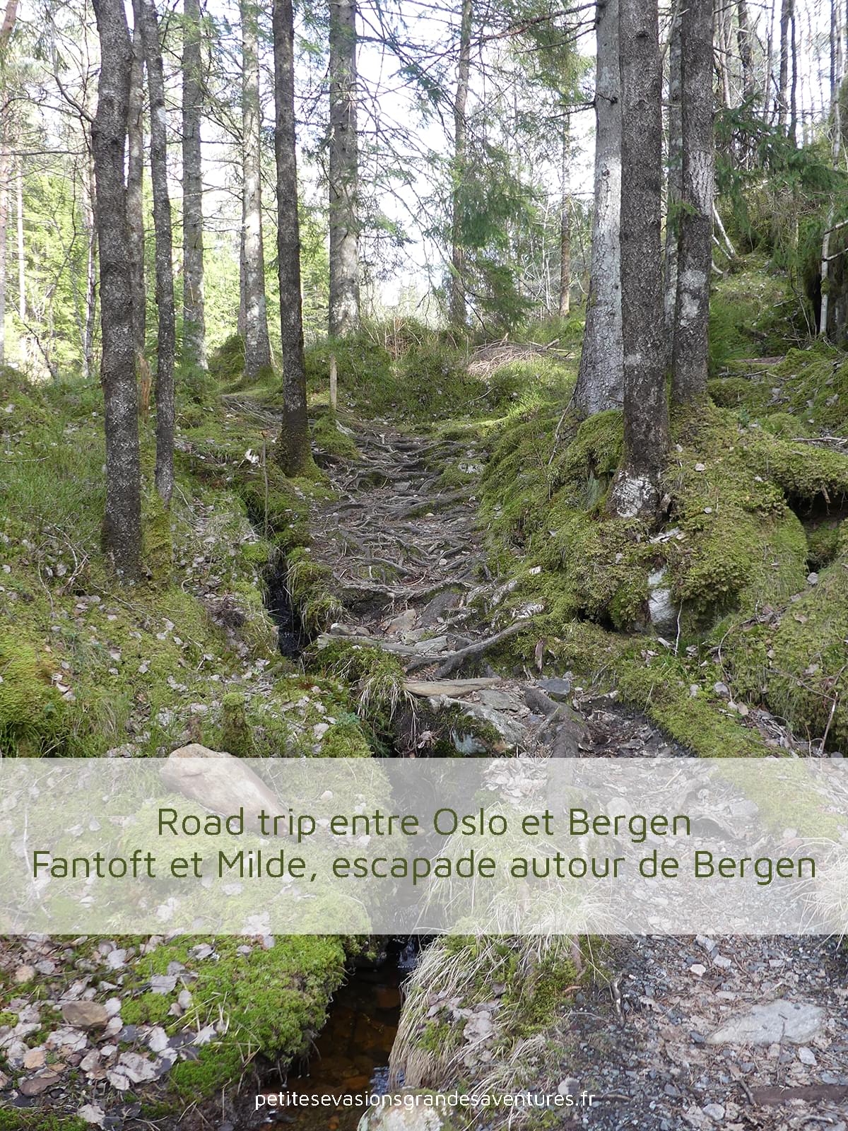 Après cette parenthèse nature et histoire à Fantoft, nous avons repris la voiture et retrouvé les routes fréquentées, accidentées et en chantier. En se rapprochant de Milde, les routes sont devenues plus étroites, moins fréquentées, les constructions humaines se sont faites plus rares, l’eau a refait son apparition, la nature a pris de plus en plus de place.