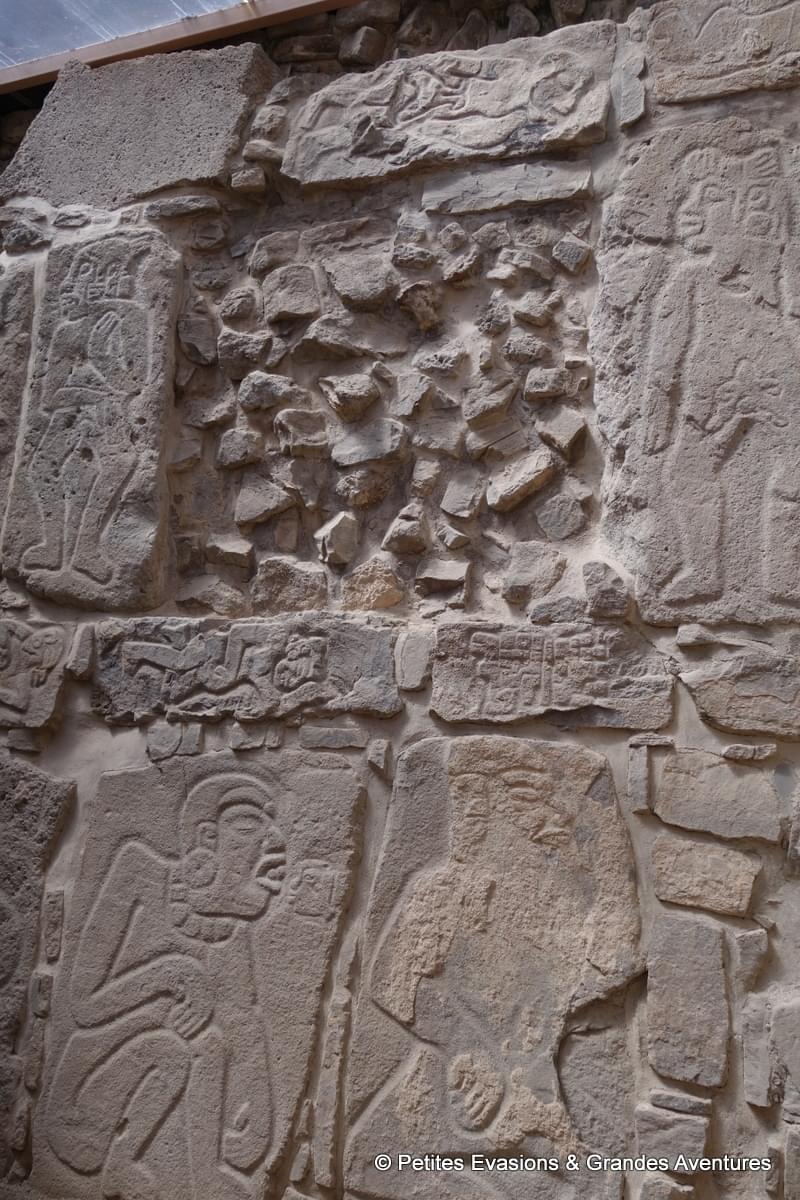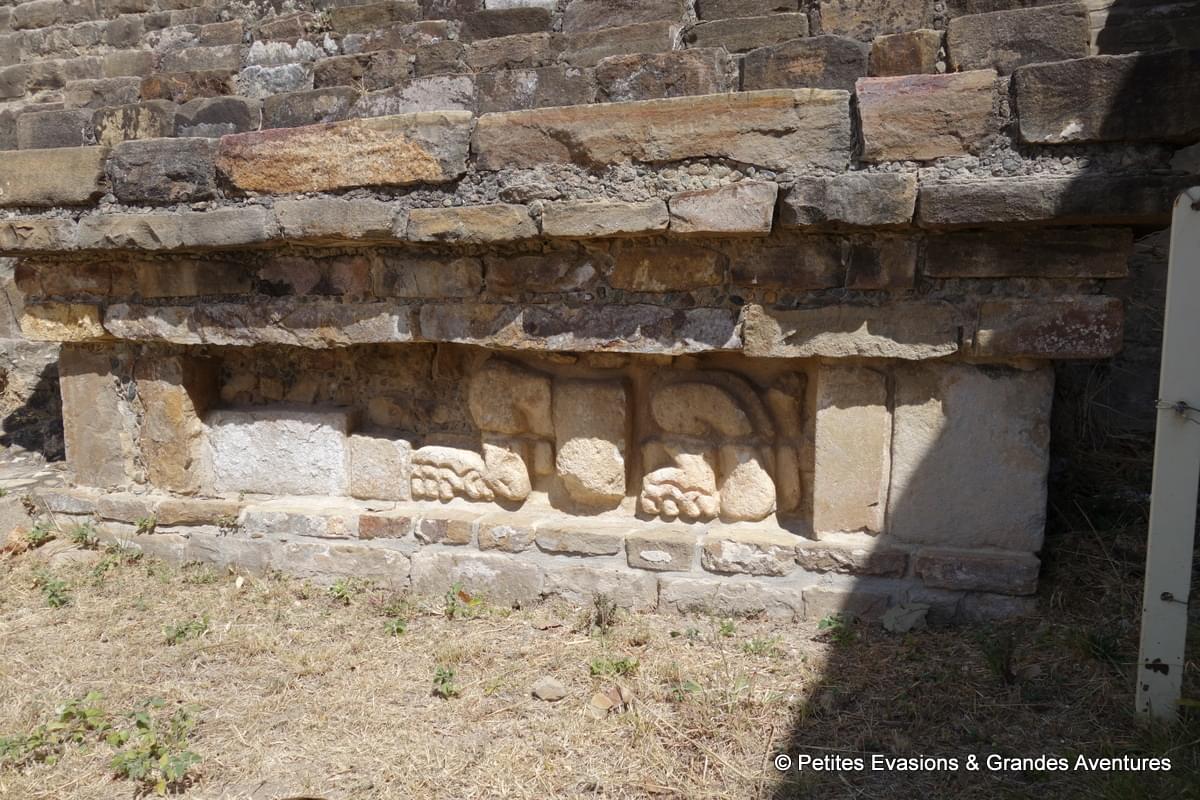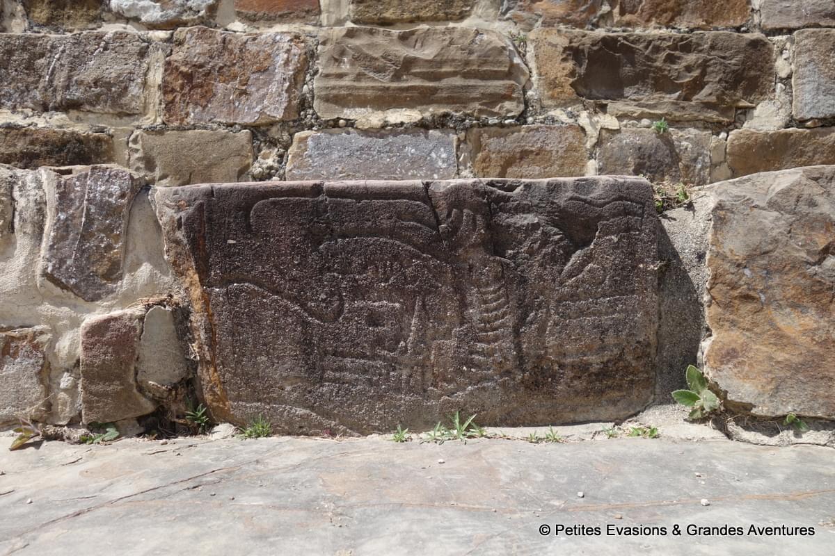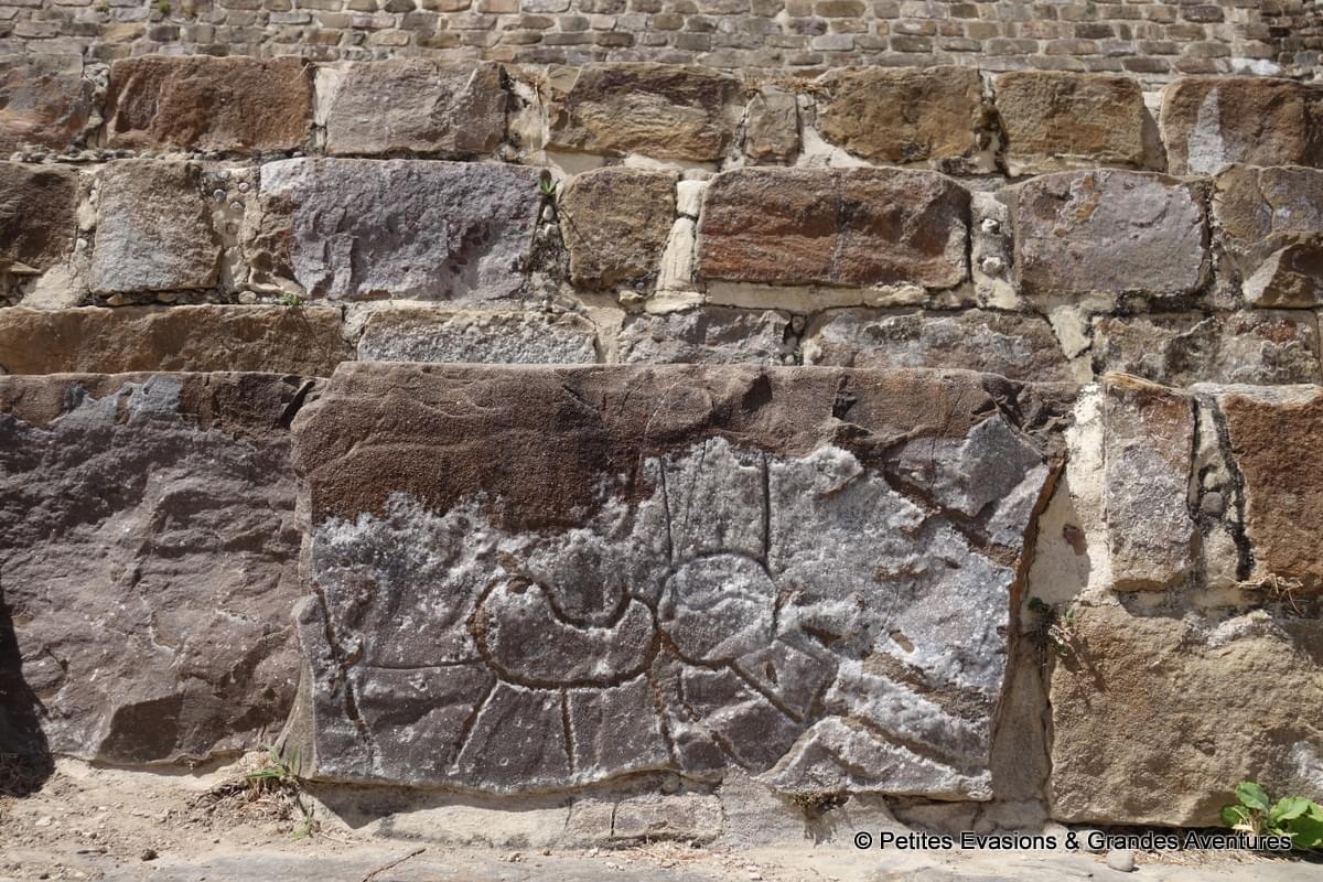 Depuis certains points de la plate-forme nord, on a pu profiter d’une vue panoramique sur le site et se rendre compte de sa surface mais aussi de la rigueur qui caractérise sa construction. A Monte Albán, tout semble rectiligne, étudié, mesuré pour créer un ensemble harmonieux et ordonné. Et comme souvent sur ce genre de site, bâti à une époque où nos outils modernes et technologiques n’existaient pas, j’ai été émerveillée de voir la précision des constructions et l’état de conservation du lieu.