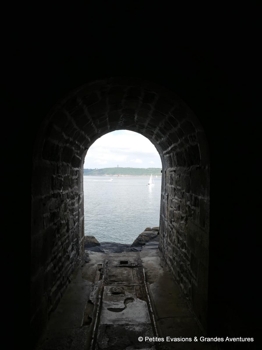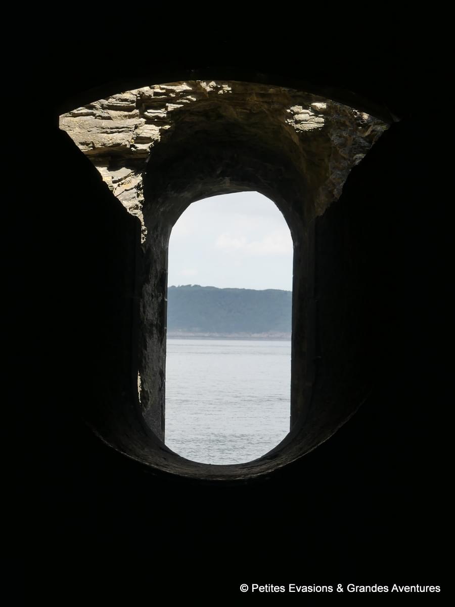 Rendez-vous maintenant dans la partie septentrionale de la Presqu’île de Crozon, aussi appelée Presqu’île de Roscanvel, pour explorer la Pointe de Cornouaille et la Batterie du même nom. En contrebas de la route, et après avoir emprunté un sentier un peu escarpé, vous pourrez observer une structure militaire dont les premières pierres ont été posées au 17e siècle. Dessinée par Vauban, cette fortification associée au Fort de Mengant sur l'autre rive permettait de défendre l'entrée du goulet de Brest. Au fil des siècles, le site a connu de nombreuses modifications et, suite aux bombardements de la Seconde Guerre Mondiale, seules les fortifications de Vauban ont subsisté. Depuis 2009, le site n’appartient plus au Ministère de la Défense mais au Conservatoire du Littoral.