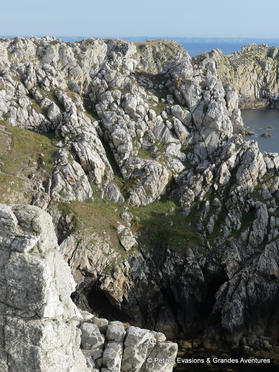 Un peu plus au sud, faites escale à Saint-Guénolé pour voir ses célèbres rochers. Vestiges d'une ancienne chaîne de montagne, ses rochers sont constitués de leucogranite, un granite clair qui peut, comme cela a été le cas à Saint-Guénolé, se fissurer et s'éroder. Déformés par des phénomènes d'altérations et d'érosion donc, ces rochers ont aujourd'hui des formes singulières et des noms tout aussi originaux : oreilles de lapin, rhinocéros, tire-bouchon, etc. Observez-les attentivement pour voir quelles formes ils vous révèlent. Regardez la mer se cogner contre ses blocs massifs et vieux de plusieurs millions d’années. Attention cependant, la beauté de ce lieu ne doit pas vous faire perdre de vue sa dangerosité et les balades sur les roches sont donc à proscrire, même par beau temps.