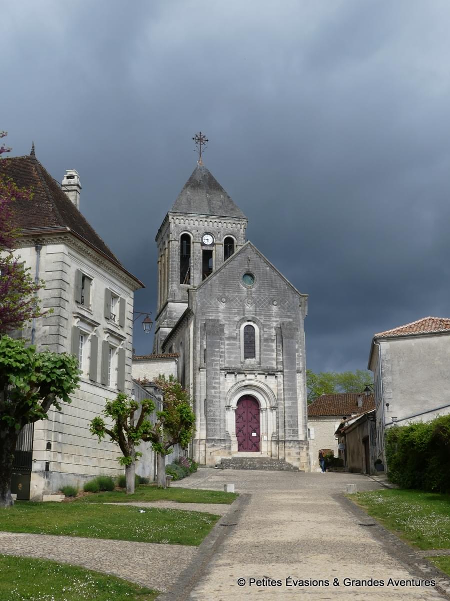 Mais, avant d’arriver au Château et de découvrir ses deux bâtisses si différentes partageant le même rocher et enserrées dans le même rempart, nous avons évidemment pris le temps de visiter un peu Bourdeilles. Ce petit bourg s'est d’abord formé au pied de l'éperon rocheux, entre l'Eglise Saint-Pierre-ès-Liens, mentionnée dans des écrits dès 1391, et le pont qui enjambe la Dronne.