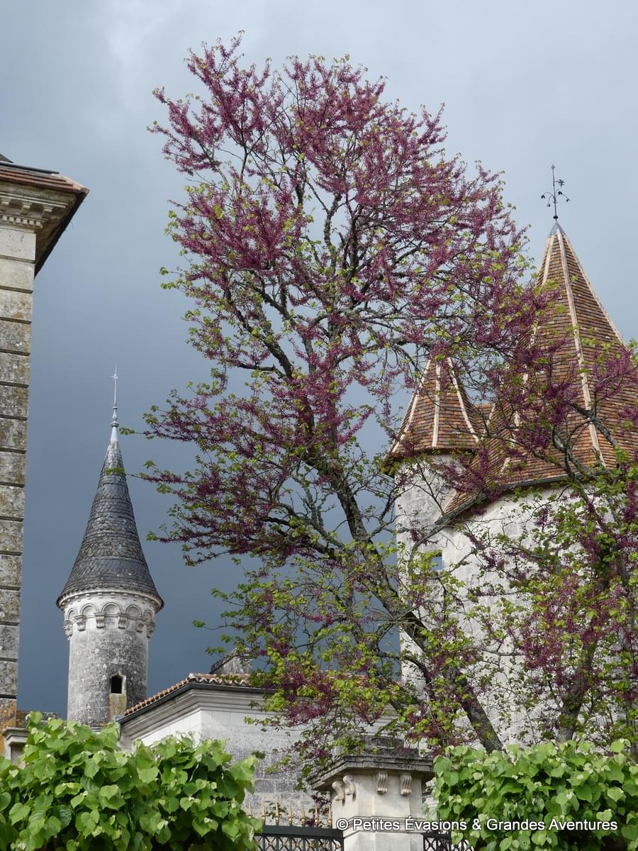 En chemin, on admire aussi une habitation aux allures de château miniature, avec créneaux et tourelle, comme un préambule à la visite qui nous attend. Un peu plus loin, on se tord le cou pour observer le séquoia géant qui s'épanouit à Bourdeilles depuis 1830. D'une hauteur de plus de 40 mètres, il fait partie des arbres remarquables et possède, à ce titre, un certificat d'authenticité.