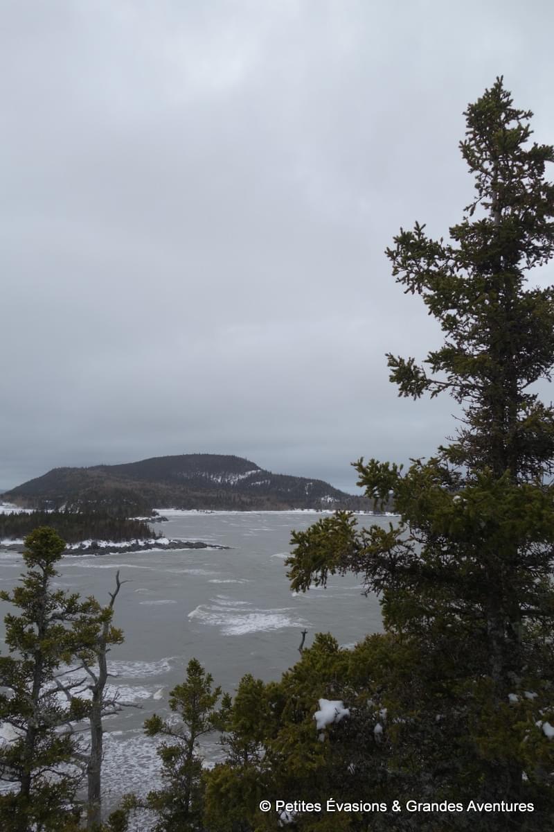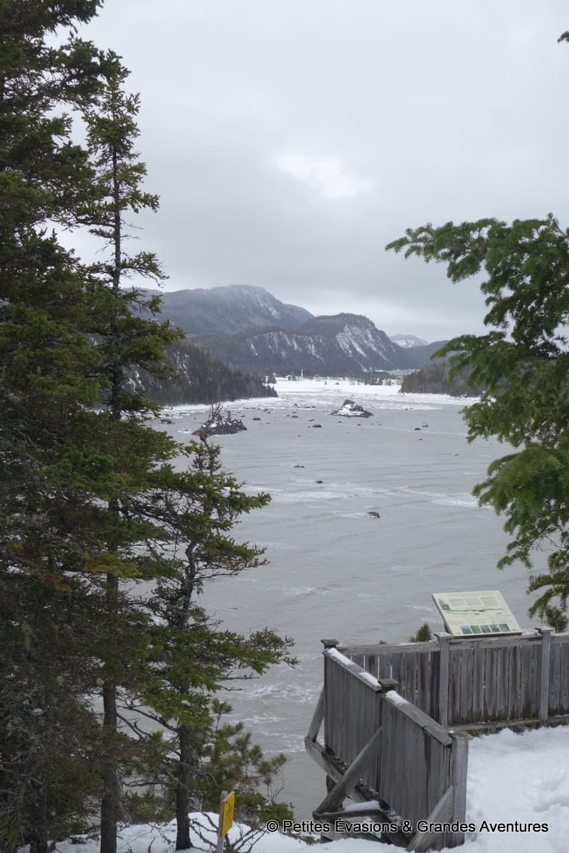 On a finalement quitté ces cailloux, témoins de plusieurs millions d’années de l’histoire de la Terre, pour rejoindre le belvédère de la Pointe aux Epinettes. Cent soixante-six marches partiellement enneigées plus tard, on observait, émerveillés, le panorama qui s’étendait devant nous. Même si on l’avait déjà beaucoup regardé d’en bas, la vue depuis ce promontoire valait bien de gravir les 166 marches !