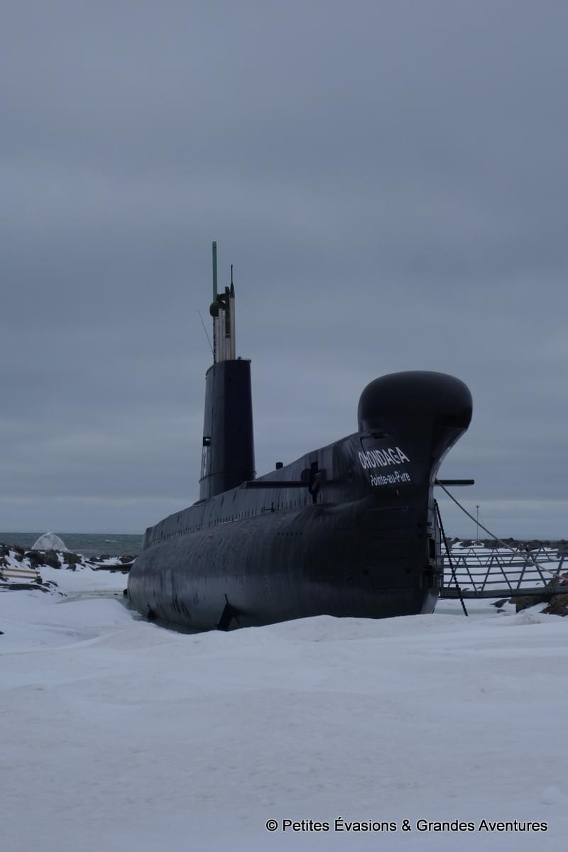 Attirés par l’impressionnante silhouette de l’Onondaga, on a commencé notre exploration extérieure (car tout était fermé) du site près du sous-marin. Construit en 1964-1965 au Royaume-Uni, le NCSM Onondaga est un ancien sous-marin de la Marine royale aujourd'hui transformé en navire-musée. Long de 90 mètres, son nom signifie "peuple de la montagne" et fait référence à un peuple amérindien.