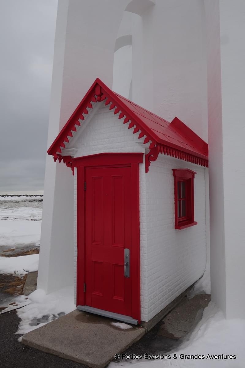 Un sourire accroché aux lèvres, on a fini par abandonner les glaçons géants pour aller voir le Phare. Construit en 1909, le Phare de Pointe-au-Père a un côté résolument moderne et un charme fou avec sa petite "cabane" qui permet d'y rentrer, à la porte et au toit rouges. Il a été construit selon les plans d'Henri de Miffonis, un ingénieur français, et pouvait être vu par les navires à 40 kilomètres de là.