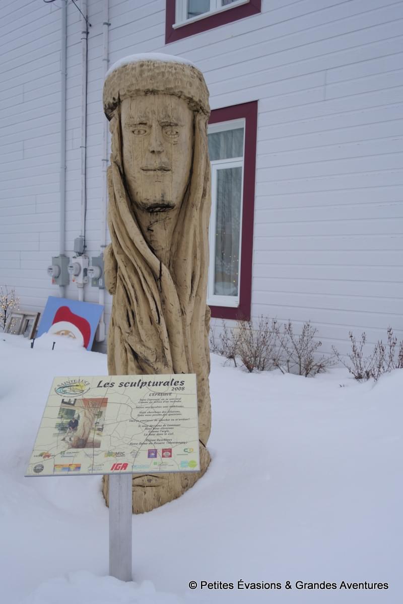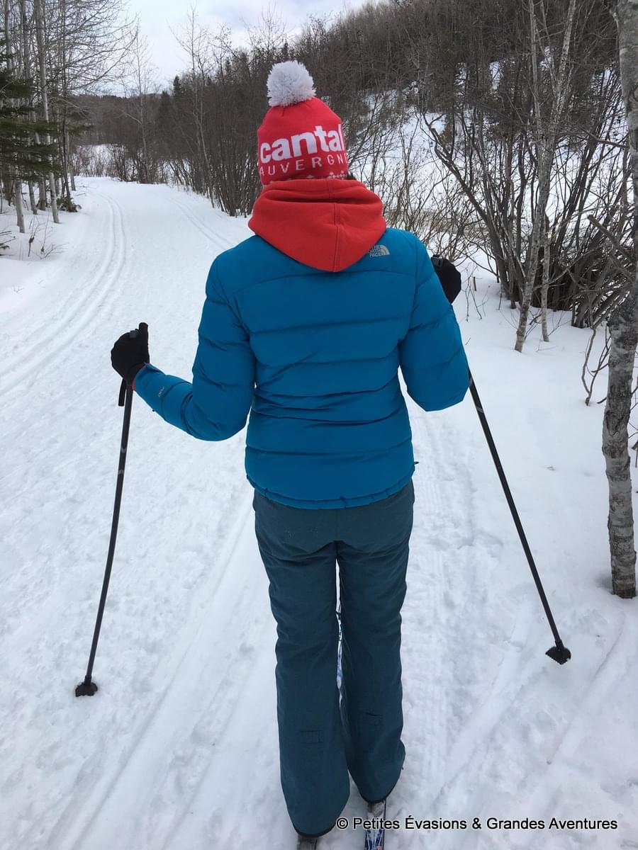On a donc rejoint le Parc Beauséjour, au bord de la rivière Rimouski, pour une balade sportive. On a loué le matériel, on s’est équipés et puis on s’est élancés sur les pistes … enfin … Nico plus que moi ! Le ski de fond en vrai, c’est beaucoup plus usant et compliqué que ce que laisse imaginer une vidéo de Martin Fourcade sur des skis ! Mais, tant bien que mal, on a tout de même réussi à avancer sur la piste (en se faisant doubler par tout le monde !).