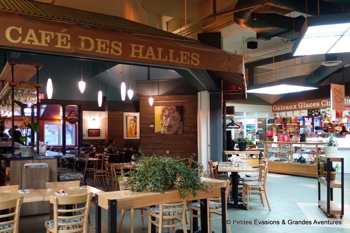 Notre balade s’est poursuivie le long de la rue Saint-Germain Ouest, bordée de commerces. On s’est arrêtés dans certains d’entre eux, pour trouver d’autres cartes postales ou découvrir l’artisanat local. Et puis on s’est promenés dans les Halles de Rimouski, un lieu agréable où sont rassemblés plusieurs commerces de bouche, un café, etc.