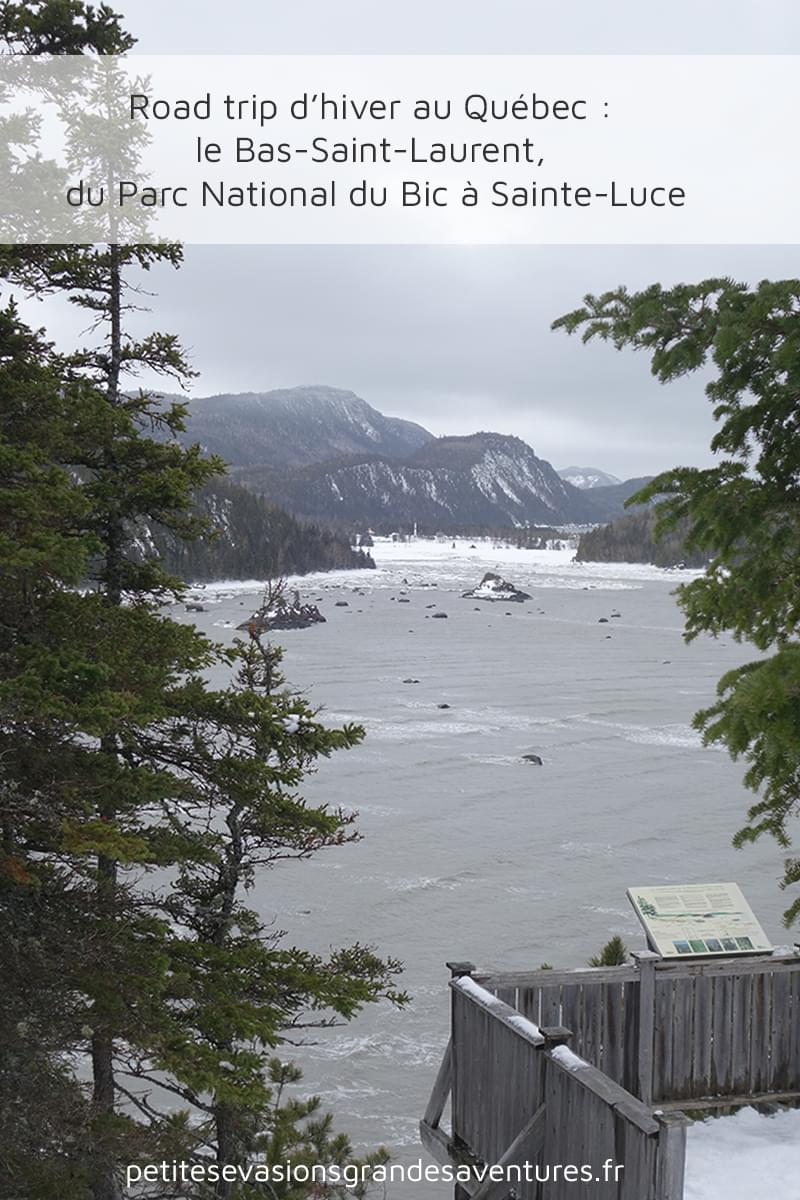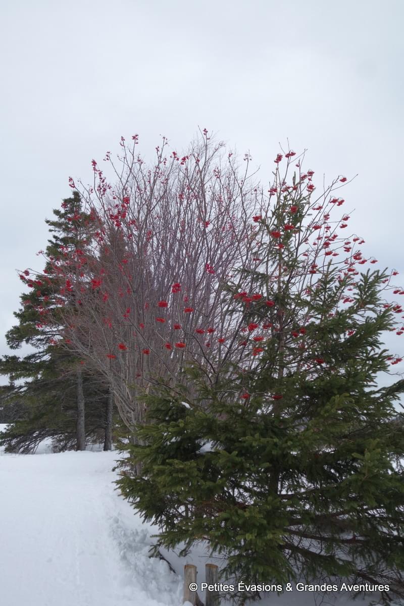 Le lendemain matin, on a rejoint le Parc National du Bic sous un ciel gris et chargé. Le Parc est niché entre la route 132 et l’estuaire du Saint-Laurent, à 20 kilomètres au sud-ouest de Rimouski. Il est administré par la SEPAQ qui gère les nombreuses activités proposées sur ce territoire de 33,2 km². En hiver, des sentiers sont aménagés pour les randonnées pédestres ou en raquettes et le ski nordique.