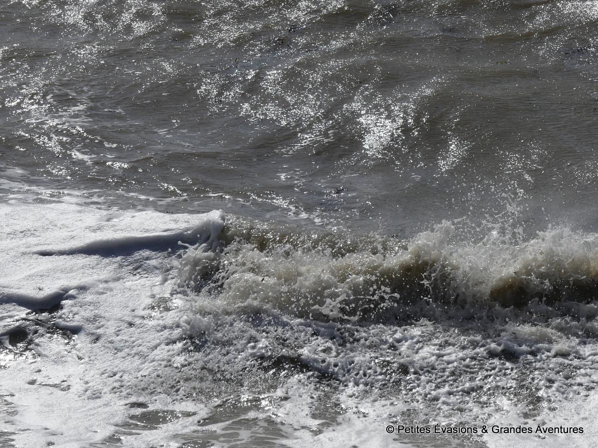 Ce jour-là, le vent secouait la mer, lui donnant des nuances parfois grisâtres, elle la roulait et l'enroulait dans un fracas impressionnant qui ajoutait une dimension sonore au spectacle qui se jouait devant nous. Quand le sentier, entouré de buissons denses, ne nous permettait plus de voir la mer, ce bruit caractéristique et l'air parfumé d'iode nous rappelaient sans cesse sa présence, là, juste de l'autre côté du végétal.