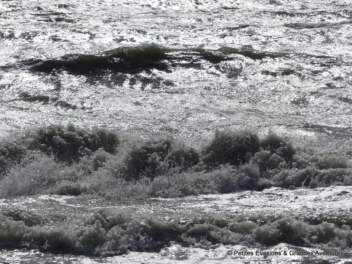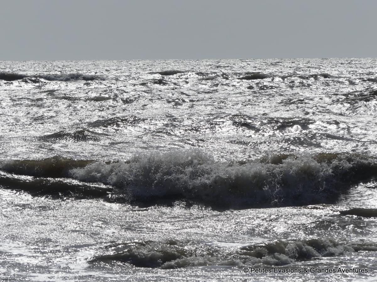 Egalement caressée par le soleil estival, la mer était parée de reflets argentés, envoûtants. L'occasion de faire quelques photos singulières, où le ciel et la mer, à contre-jour, s'exposaient en gris, le premier quasiment uniforme et le deuxième étincelant et rempli de mouvements. En toute saison, par tous les temps, la mer est belle et offre toujours un visage différent.