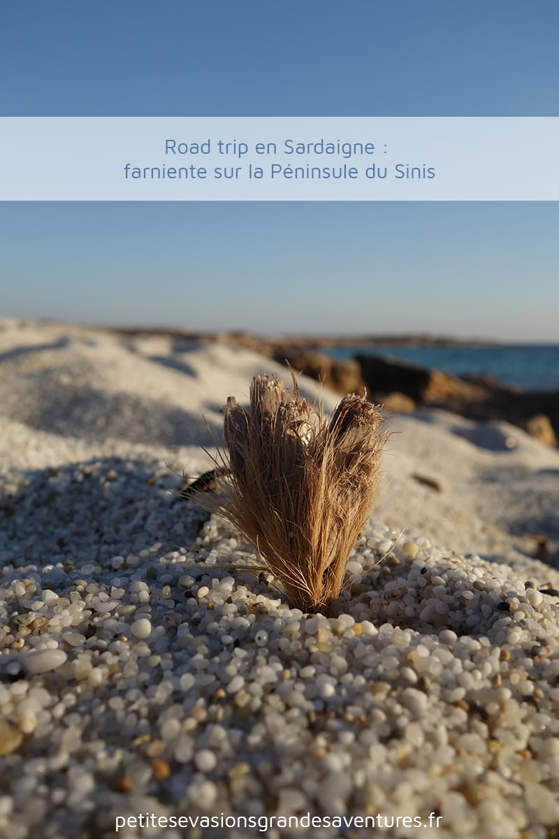 Lors de notre premier séjour, en 2013, on avait donc passé une journée sur la Péninsule du Sinis. On avait visité le captivant site archéologique de Tharros, qui, pour ne rien gâcher, se trouve dans un cadre naturel magnifique. Puis, on avait posé nos serviettes sur la singulière Spiaggia di Is Arutas, célèbre plage « en grain de riz ». Cette plage est aussi lieu de notre première expérience de snorkeling en Sardaigne. Bref, une journée divine, gravée dans notre tête.