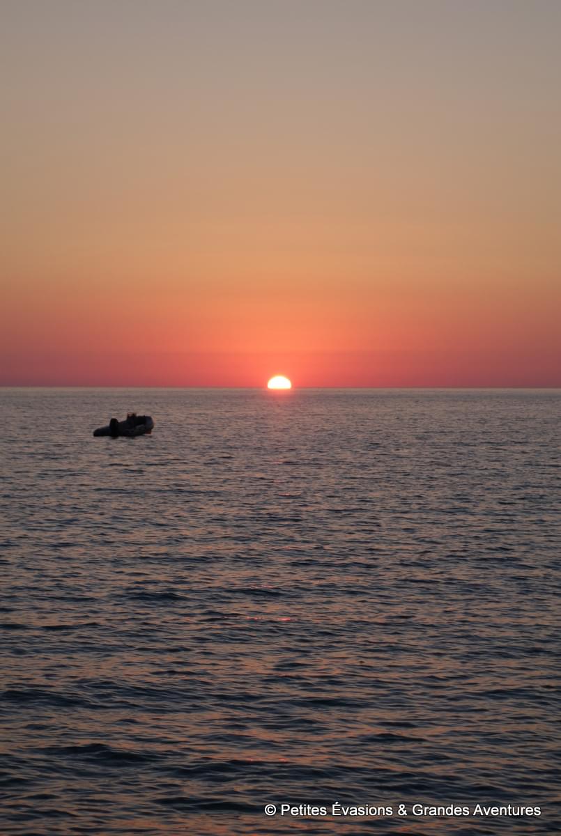 L'avantage d'avoir un logement aussi proche de la plage, c'est que l'on a pu en profiter à toute heure ! Et notamment au moment du coucher de soleil, sans pression, avec nos victuailles achetées à Cabras pour l'aperitivo. On est restés là tranquillement alors que la plage se vidait, à regarder le soleil s'enfoncer peu à peu dans la mer et la lumière décliner doucement.