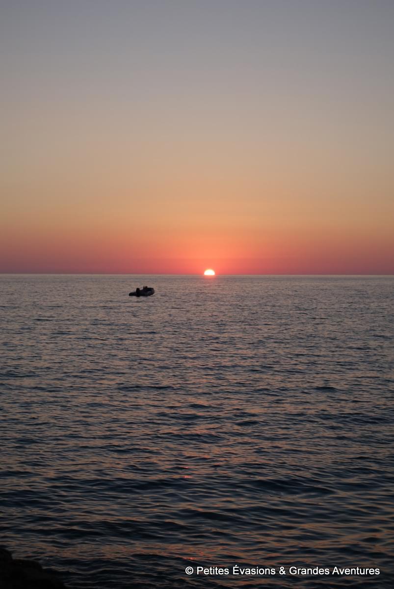 Et comme notre première fois à Is Arutas, une fois repus de baignade et de farniente au soleil, on a rejoint le petit bar de plage. Posés sur sa terrasse, on s'est adonnés à un de nos passe-temps favoris de ce voyage : regarder le ciel rejoindre doucement l'horizon et plonger dans la mer. Une belle manière de clore cette étape sur cette si belle Péninsule. Le lendemain d'autres émerveillements nous attendaient plus au sud.