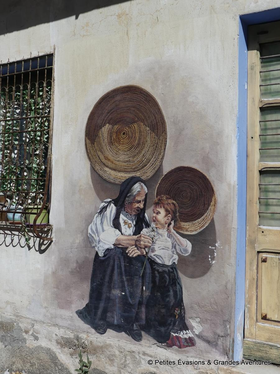 Qu’elles illustrent une tradition sarde ou dépeignent les travers de la société moderne, ces peintures enrichissent le visiteur, suscitent des émotions et poussent à la réflexion. Durant nos séjours sur place, nous avons croisé de nombreuses murales, au hasard de nos balades ou parce que nous savions que le village en question était une véritable galerie d’art à ciel ouvert.